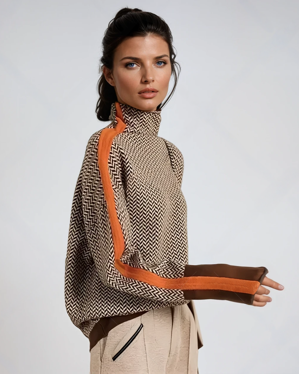 Cuello alto estructurado: aporta calidez, elegancia y un efecto estilizado en la silueta.